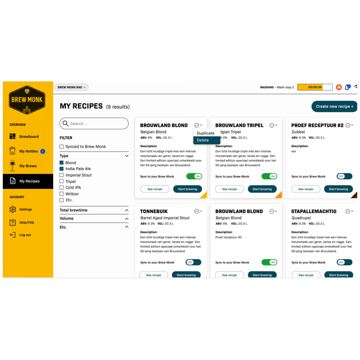 Mit dem Brew Monk® B50 erhalten Sie Zugang zur digitalen Plattform mybrewmonk.eu. Dort stehen Ihnen umfassende Tools zur Organisation und Optimierung Ihres Brauprozesses zur Verfügung: