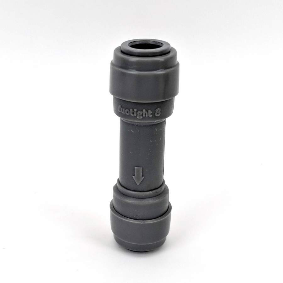 Dieses Duotight-Rückschlagventil ist so konstruiert, dass es Gase oder klare Flüssigkeiten nur in eine Richtung durchlässt. Es schützt somit Steuereinheiten und Druckregler.